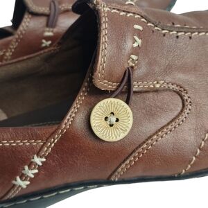 Clarks Loafer Women's Brown Leather Slip On Button Comfortable Shoes Sz 8M