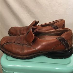 These size 11 Clarks loafers are made of leather and have been worn slightly. Very comfortable.