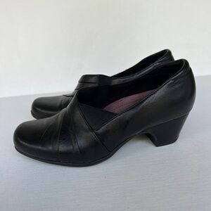 Clarks Loafers Size 7W Black Everyday Sugar Spice Heeled Leather 85140