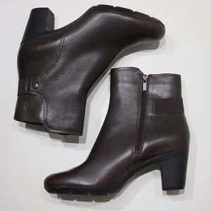 Clarks Lucette Jewel Dark Brown Leather Heeled Ankle Boot Comfort Women Size 10