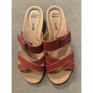 Clarks Manilla Pluma Sandals Women's 10 N Cushion Sole Red Leather Adjustable