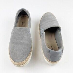 Clarks Marie Suede Round Toe Espadrille Slip On Classic Loafers Gray Size 8