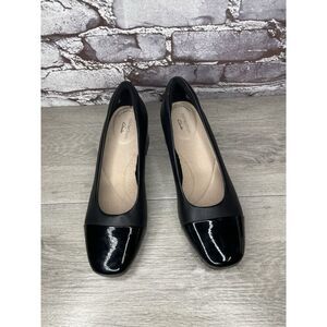 Clarks Marilyn Black Leather Patent Cap Toe Pump Heels Shoes Women Sz 8M US/39EU