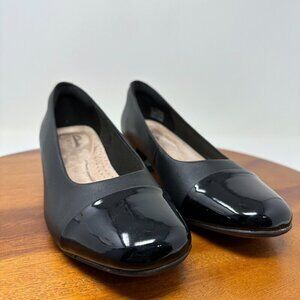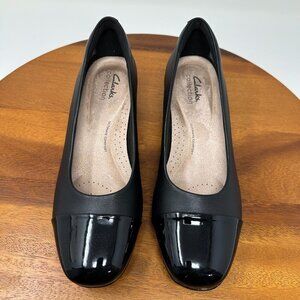 Clarks Marilyn Sara Black Pumps Womens Size 8 Chunky heel Comfort Office Preppy