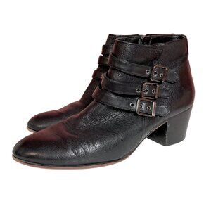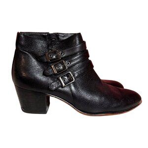 Clarks Maypearl Rayna Black Leather Boots Strappy Ankle Booties Size 9