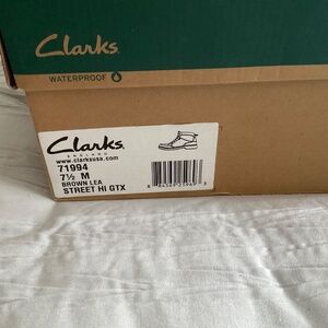 Clarks Men Brown LEA Street HI GTX boot. Brand new. Never worn. Won’t mail them out in the original box just to cut down on bulkiness when mailing however, if you do want them in the box please specify.