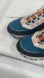 Dynamic Clarks athletic shoes with a striking blue and orange color scheme. Ideal for active lifestyles.