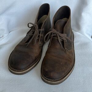 Clarks Men’s Bushacre 3 Chukka Boot Sz 10 Leather Contrast Stitch Brown Lace Up