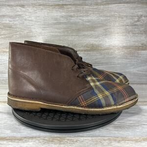 Clarks Mens Plaid Brown Leather High Top 2 Eye Lace Up Chukka Boots Size 13