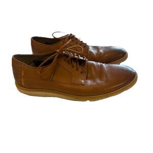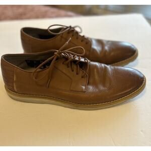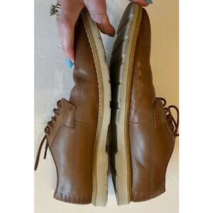 Clarks Mens British Tan Leather Wing Tip Lace Up Shoe Casual Oxford Size 10.5 Leather Lace Up Closure. Good pre-owned. Slightly wear at heels and are featured in photos. Please view all photos for details carefully before purchased. These are part of the description and contact if you have further questions. From pet and smoke free home. Thank you for looking and happy shopping!