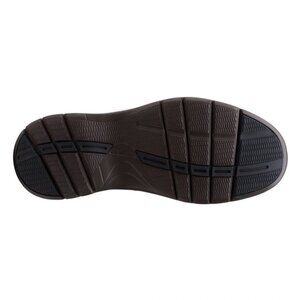 This Unstructured slip-on style benefits from a flexible pair of elastic gores and an Air Circulation System that pulls in fresh air to keep feet in dry comfort. Its upper is crafted from full grain leather with a nubuck panel at the heel, and a full grain leather sockliner surrounds the foot in soft comfort. Its durable rubber outsole is lightened by an EVA midsole and a removable Ortholite® footbed dulls impact and wicks away moisture.