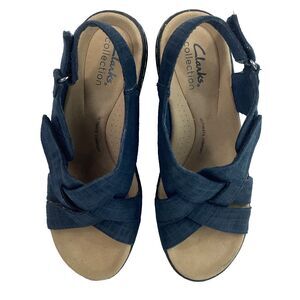 Clarks Merliah Echo Women 5.5(M) Blue Denim Strap Ankle Buckle Heel Sandal 28025