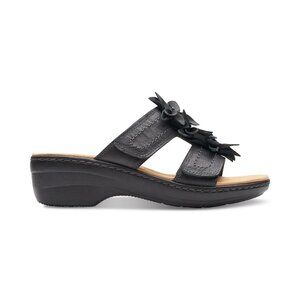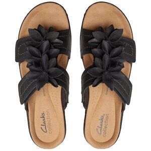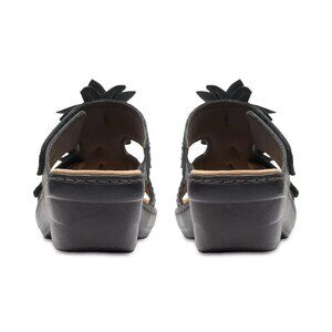 Clarks Merliah Raelyn Flower-Detail Wedge Heel Platform Sandals Black Size 7.5M