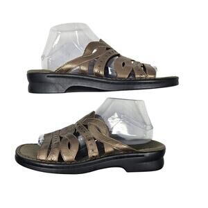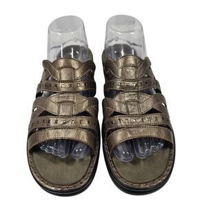 Clarks Metallic Bronze Leather Slides Sandals Size 9