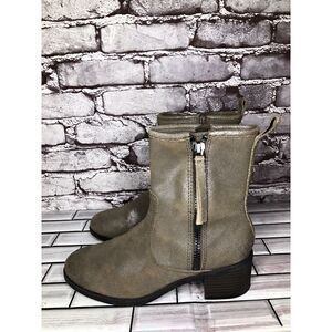 Clarks Metallic Leather Taupe Nevella Devon Zip Ankle Boots Women 7.5M US/38EU