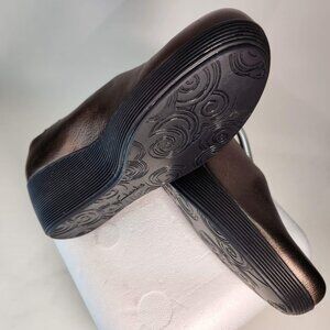 Who doesn't love a metallic leather wedge? Made by Clarks so you know it's high quality & comfortable. The platform sole with a bronze-like feel is made of EVA material wrapped in rubber, they're lightweight, cushioning and flexible. Sz 7, they run narrow & no longer fit my post-surgery feet :(