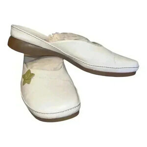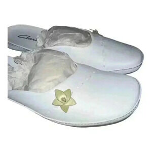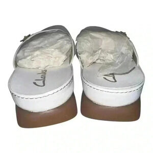 Clarks Mindy Leather White Slip On Mules, Size 9