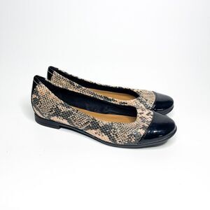 🍋 Clarks • NWOT Women’s Atomic Haze Patent Leather Snake Print Flats Size 6.5US