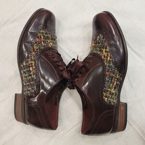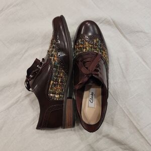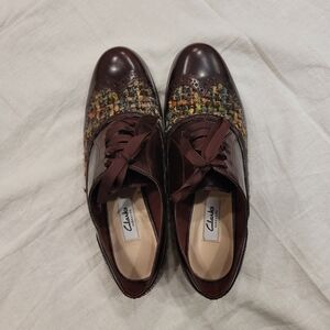 Clarks Narrative Hamble Oak Brogues Burgundy shoes in good used condition. Wing tip design and tweed detail. Size 9M.