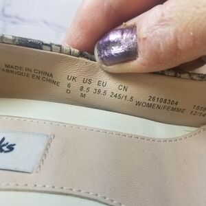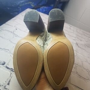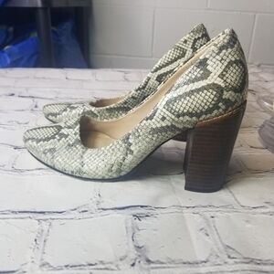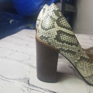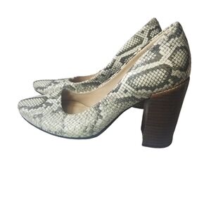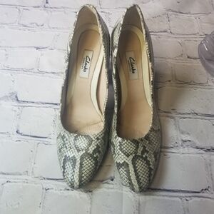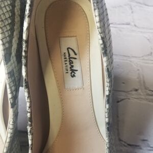 Clarks Narrative snakeskin block heels cream crumble block chunky heels size 8.5 heel 3.75