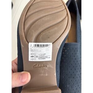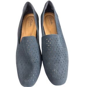 Clark’s Navy Blue Juliette Hayes Leather and Perforated Fabric Loafer Size 8.5