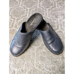 Clarks Navy Leather Slip-on Mules 84616 WOMENS SIZE 6M comfy business casual