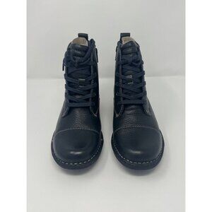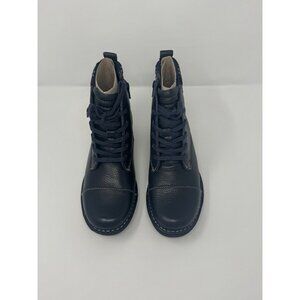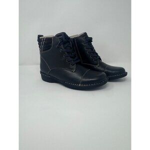 Clarks Navy Leather Whistle Bea Flannel Detail Ankle Boots 7 New with Box