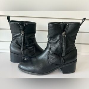 Clarks Nevella Devon Side Zip Ankle Boots Black Leather Bootie Heels Women's 9.5