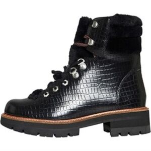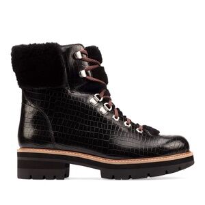 Clarks ORIANNA HIKER Womens Black Croc Leather Lace Up Hiking Winter Boots Casual Ankle Booties