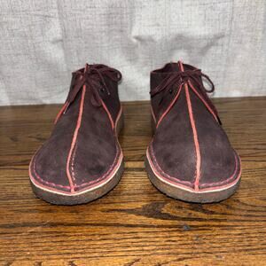 Clarks Originals Desert Trek Burgundy Suede Boots Men’s 9M Red Stitch Crepe Sole