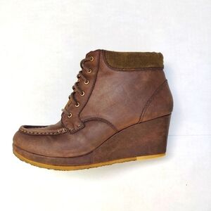 Clarks Originals Vogue Iris Dark Brown Leather Wedge Ankle Boot Size 11M