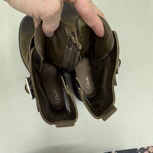Clarks Orinoco 2 Lace Dark Olive Leather Side Zip Boots Shoes Womens size 8.5 M