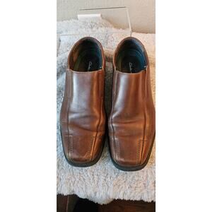 Clarks Oxford Slip On Leather Loafers Men Size 11.5M Brown Career Office Work