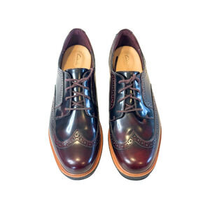 Clarks Oxfords Shoes Teadale Maira Wingtip Derby Platform Aubergine Women's Size 9.5M