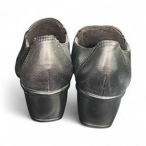 Classic Clarks Partridge 89487 women’s shoes in size 7. Genuine black leather with slip-on design and low block heel for all-day comfort. Stylish stitching detail, great for work or casual wear.