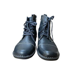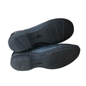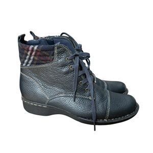 Clarks Plaid Whistle Bea Black Pebbled Leather Zip Ankle Boots Women Size 7.5
