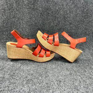 Clarks Platform Wedge Sandals Women's Size 10 Redish Orange Leather Buckle Shoes