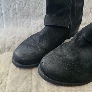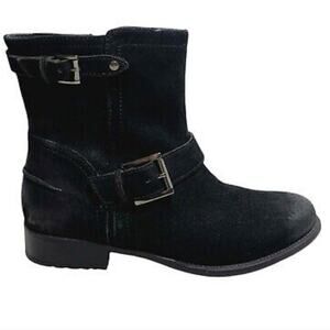 Clarks Plaza Float Moto Boots Womens 8.5 Black Suede Buckle Comfort Distressed