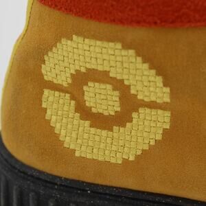 Step into collectible style with these Clarks x Pokémon Torhill Chukka boots featuring Pikachu #025. Crafted in yellow suede with a honeycomb lining, embroidered Pokeball detail, and contrast orange collar, these shoes celebrate the world’s most iconic Pokemon. Finished with durable black yellow rubber soles, lace-up closure, and cushioned comfort for everyday wear. A must have for fans and collectors alike.