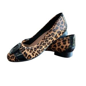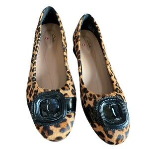 Clark's Pony Hair Leopard Print Blush Cove Ballet Flats Patent Leather Shoes 9 M