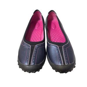 Clarks Privo 9 Leather Slip On Comfort Walking Flats Navy Blue Pink Womens Shoes