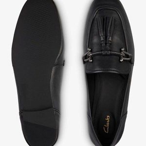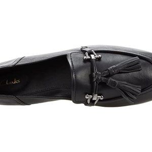 Easily transition from the office to a night on the town in the Clarks Pure 2 Tassel loafers, featuring a square-toe silhouette and fun leather and metal front accent with tassels. Slip-on loafer design. Premium leather upper. Manmade lining and insole. Durable manmade outsole. Imported.