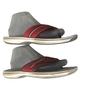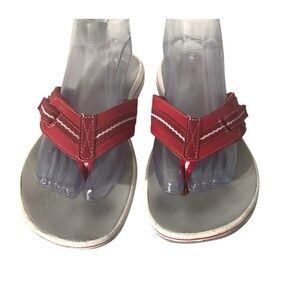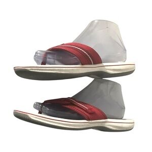 Clark’s Red Flip Flop Sandals SZ 9 Women Casual Beach Comfort Cushion Thong