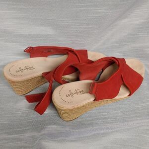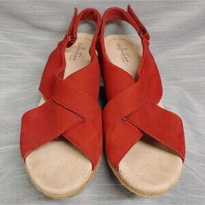 Clarks Red Lafley Alaine Open Toe Sling Back Espadrilles Wedges Heels Womens 10