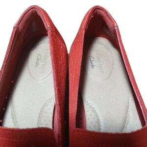 Clarks Red Perforated Suede Loafers Women's Flats size