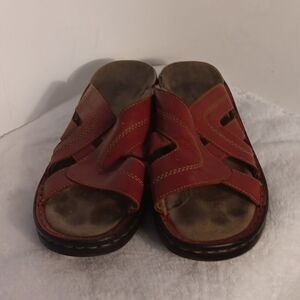 Clarks Red Leather Slide Sandals