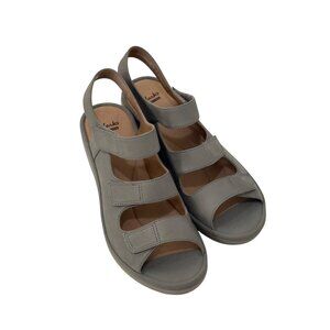 Clarks Reedly Juno Tan Sage Leather Wedge Sandals Womens 9.5M Adjustable Straps