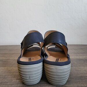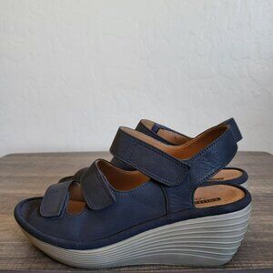 Clarks Reedly Juno Wedge Nubuck Leather Strappy Sandals Open Toe Blue Size Women's 5.5