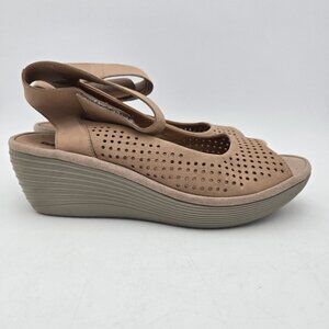 Clarks Reedly Salene Tan Perforated Leather Wedge Sandals in Womens Size 9.5 Pe