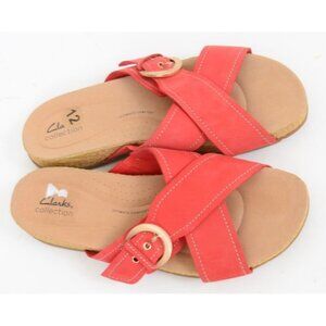 Clarks Reileigh May Leather & Raffia Slide Slip On Sandals Women's Size 12